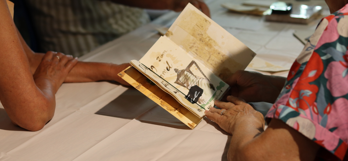 Ebenso gab es die Möglichkeit für die Gäste, selbst kreativ zu werden. Unter Anleitung von Anita Guske konnten die Teilnehmenden mit Tee ein Lesezeichen selbst gestalten – ein kleines Kunstwerk, das ein persönliches Andenken an den Abend darstellte.