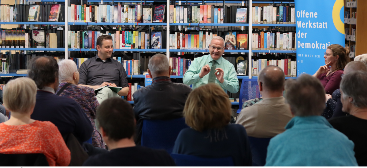Die „Offene Werkstatt der Demokratie“ in der Brigitte-Reimann-Stadtbibliothek bietet allen Menschen in Hoyerswerda kostenfrei einen offenen Raum zum informieren, diskutieren und selbst aktiv werden.